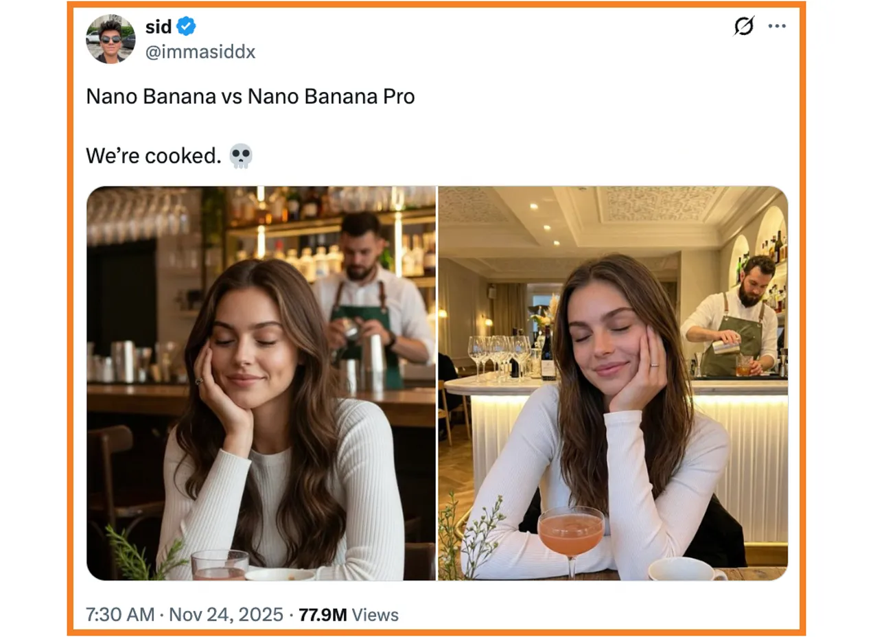 昨年、世界中で「AIってすごい、進化しすぎ!」という瞬間がありました。それは、 GoogleのNano Banana Proを使って撮影された、カフェに座る女性の写真でした。写真がプロ並みに見えたから「リアル」になったのではなく、iPhoneで撮影したありきたりな写真のように見えたからでした。あの「生々しい美学」がそこにあったのです。