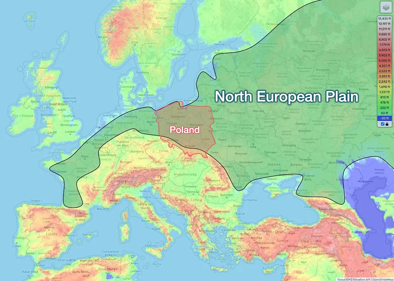 投稿者: qqjjmas01 | 2024年9月13日 0件のコメント ポーランドが同じ平原に位置していることは、西はドイツ、東はロシアに侵略され、125年間も姿を消していた理由を説明しています。 これは、ポーランドがロシアの侵攻を非常に恐れ、GDPの6%を軍事費に充てている理由でもある。 (文明を生み出した海の死 – トマス・プエーヨ著から)