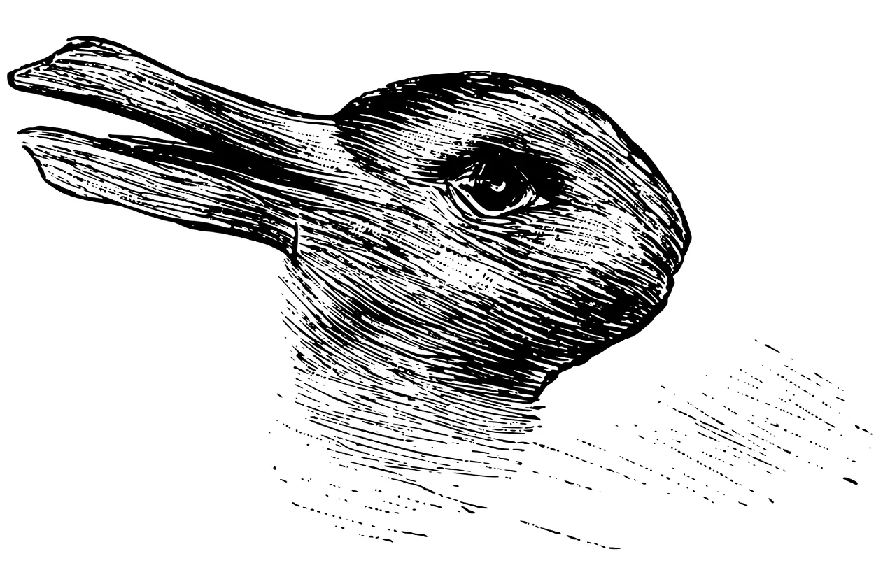 アヒルとウサギの古典的なスケッチを例えとして用いています。この絵は曖昧なので、見る人はそれをアヒルにもウサギにも見ることができます。同じように、ある世代の科学者がまったく同じ証拠を次の世代の科学者とはまったく異なる方法で解釈できることを理解できます。たとえば、初期の天文学者は夜空を見てアヒルを見ました(固定された地球の周りを回る天体)が、その後、コペルニクスとガリレオの天文学者はまったく同じ夜空を見てウサギを見ました(太陽の周りを回る回転する地球からの視点)。