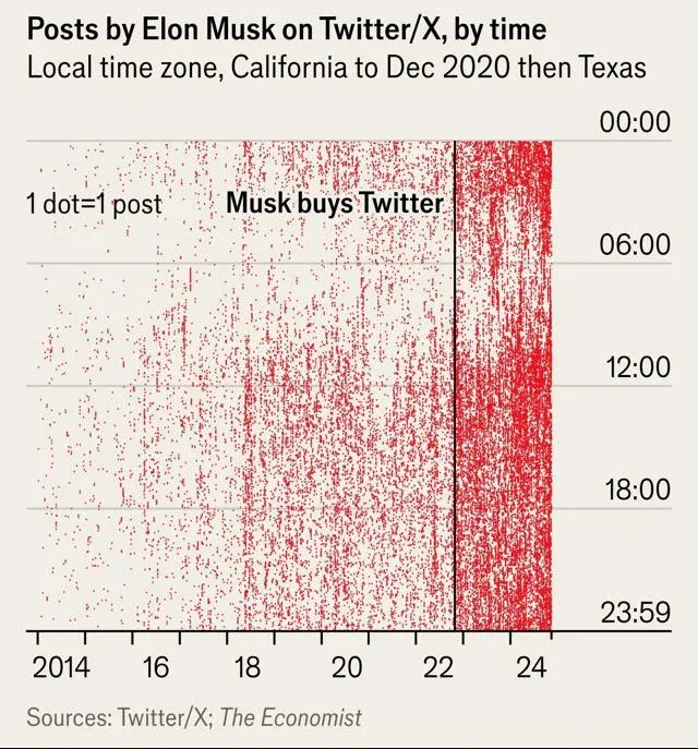 投稿者: qqjjmas01 | 2025年2月26日 0件のコメント 彼は常に「オン」です。文字通りです。彼がどのくらい頻繁にツイートしているかを見てください。 (イーロン・マスクとスパイキー・インテリジェンス – ネイト・シルバーから)