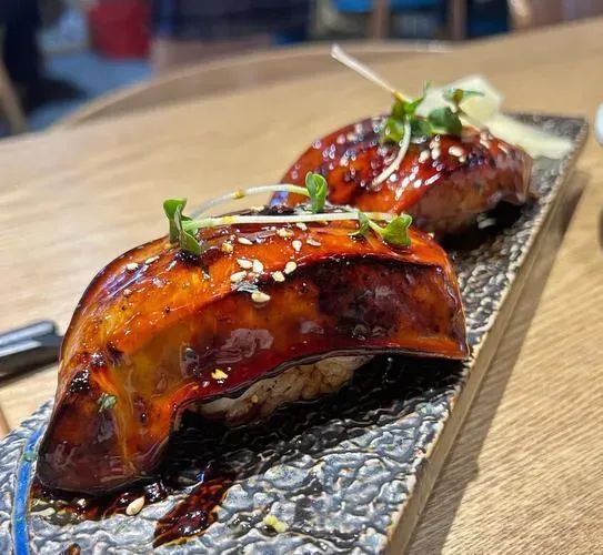 フォアグラの握り。味付けが濃すぎて、寿司の考え方からは外れるが、これが海外の人には受ける。