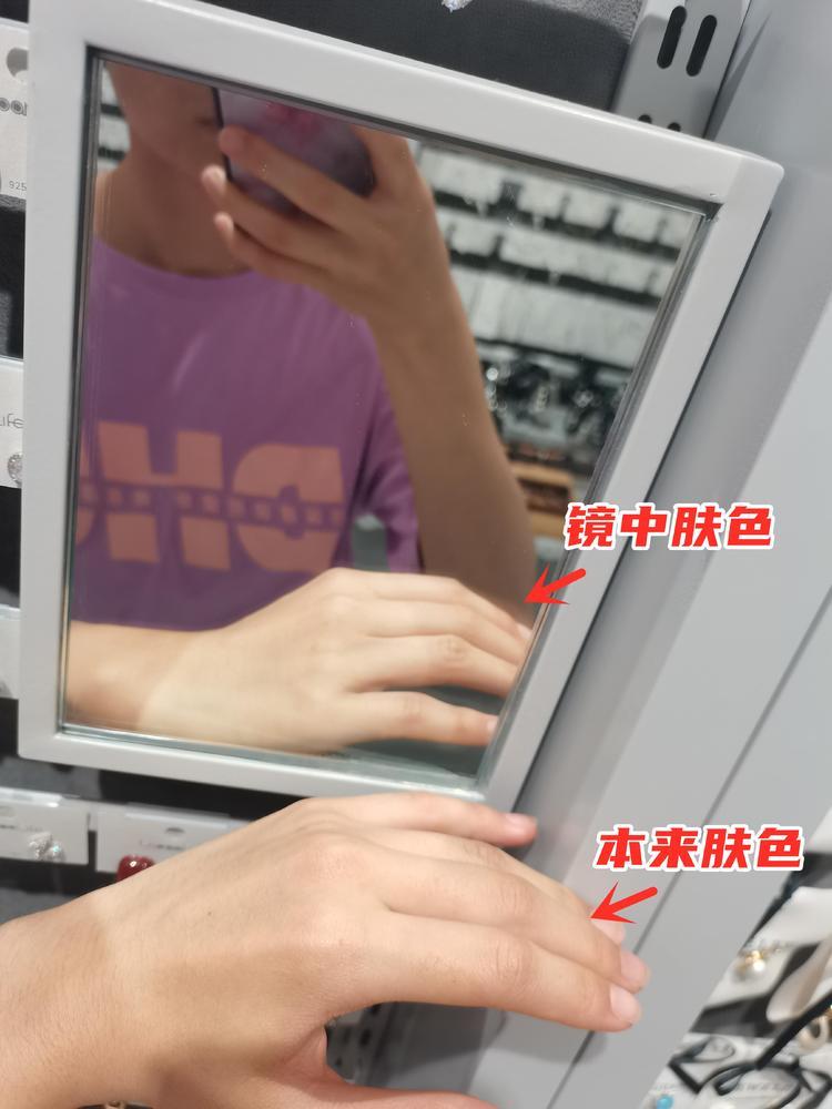 このような高い反射率の鏡で、自分の姿の肌の部分を見ると、実際よりも白く明るく見える。特に、アクセサリーや化粧品の店舗では、この高反射率の鏡が使われている。