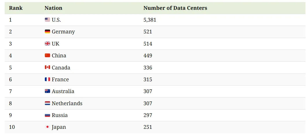 データセンターが最も多い国はどこですか?